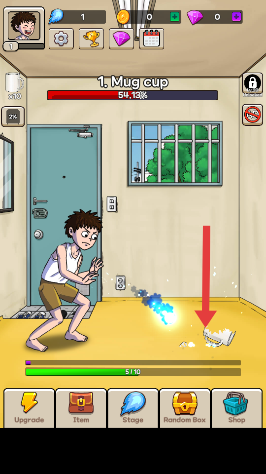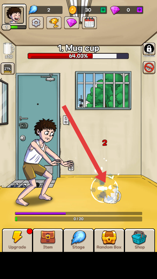 4、持续对目标物品发起攻击,其破坏进度,在摧毁物品的过程中获取大量金币和经验,不断提升游戏等级,解锁更多内容。