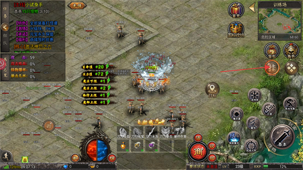 4、在训练场场景中,针对主线小试身手击杀怪物的任务,点击界面中的挂自动按钮开启自动战斗来推进任务。
