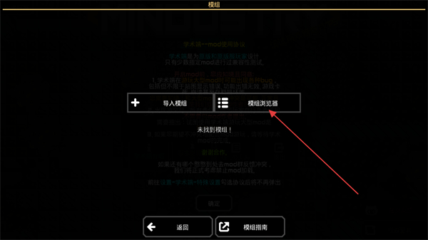 2、进入模组页面后,点击模组浏览器按钮,可进入模组列表界面,查看游戏支持的各类第三方模组。