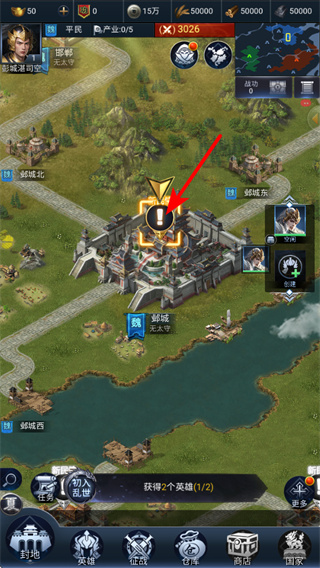 2、进入城池界面后,点击武将标识可打开部队管理界面,这是组建作战军队的核心操作,不同武将对应不同兵种,能提升部队的作战适配性。