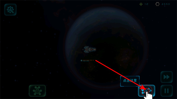 3、在太空探索场景中,点击带有点击这里提示的功能按钮,准确点击可触发飞船操作,保障太空任务推进。
