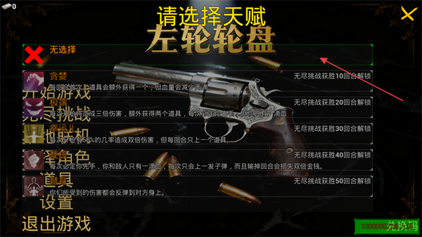 1、打开左轮轮盘游戏主页面,点击选择进入无尽挑战或是直接开启普通模式的游戏。