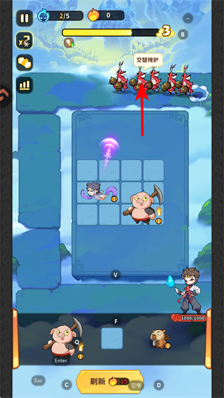 1、找到红色箭头指向的敌方单位集群,点击该区域可直接触发与敌方的战斗,敌方单位会逐步向我方阵地推进,此时战斗流程正式开启。