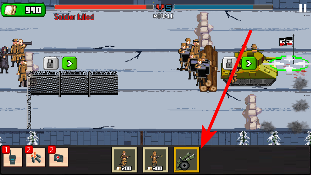 3、使用大炮坦克,在可用的武器选项中,大炮和坦克具有强大的火力,点击大炮或坦克的图标,就能将其投入战场,对敌方造成大量伤害。