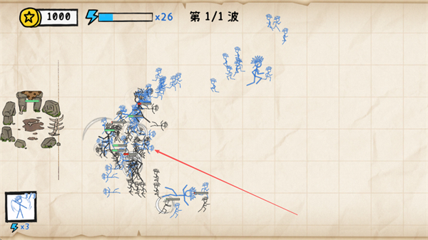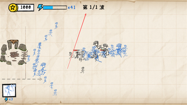 以作业本为背景打造战场,铅笔线条绘制的兵种与敌军充满童趣,搭配纸张纹理视觉效果,营造独特的“纸上战争”氛围。