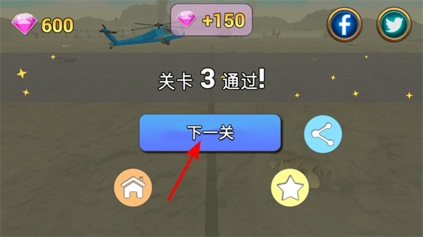 3、关卡通过后,点击下一关按钮,可进入下一个关卡继续挑战,这是持续推进游戏进度的关键操作,能解锁更多内容。