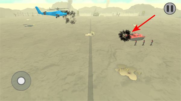4、面对敌方坦克单位时,直升机可发挥空中优势对其发起攻击,利用火力压制消灭敌方坦克,保障己方地面部队的推进。