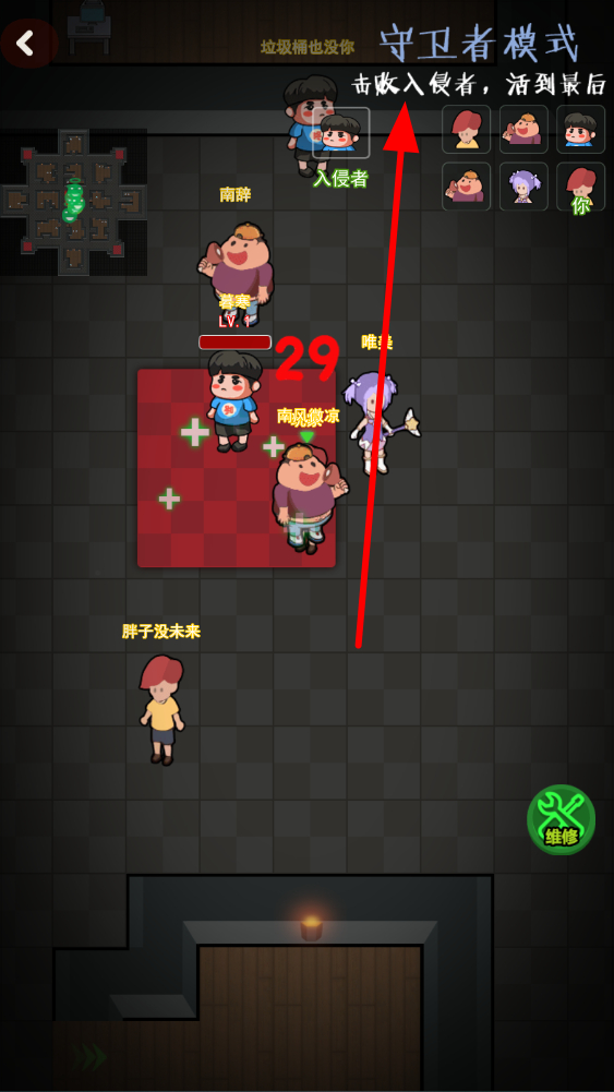 3、在游玩的模式下,要与入侵者展开战斗,利用升级后的技能和购置的道具,对入侵者发起攻击,尽可能多地击败入侵者,保护自身安全。