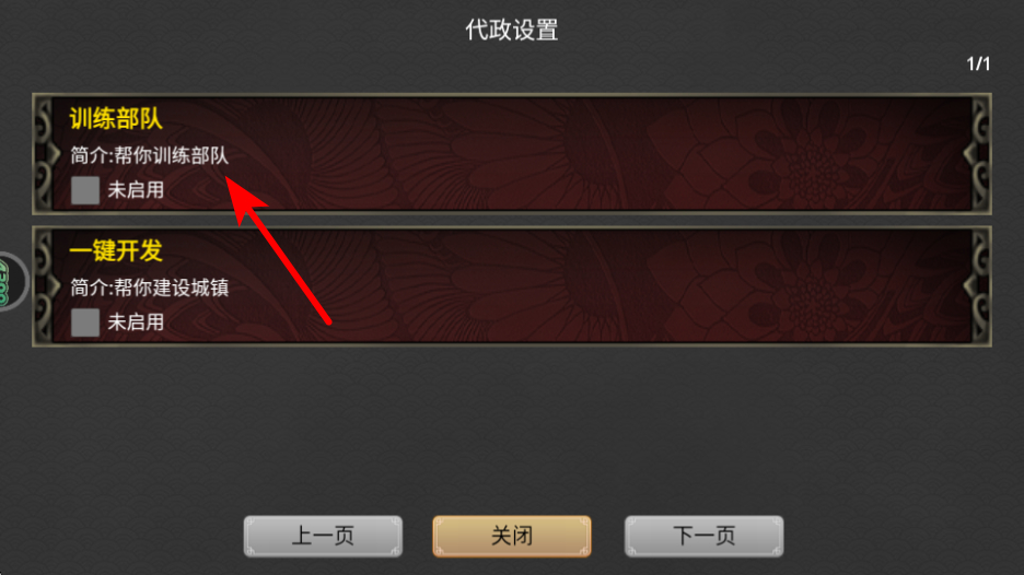 3、在代政设置界面,勾选训练部队可启用自动练兵功能,这是提升国家军事力量的高效方式,能持续强化军队战力以应对外部威胁。