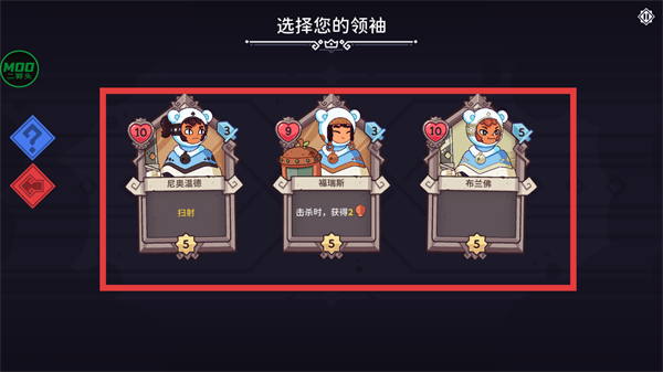 1、进入游戏选择领袖界面,挑选适合的领袖卡片,完成初始选择。