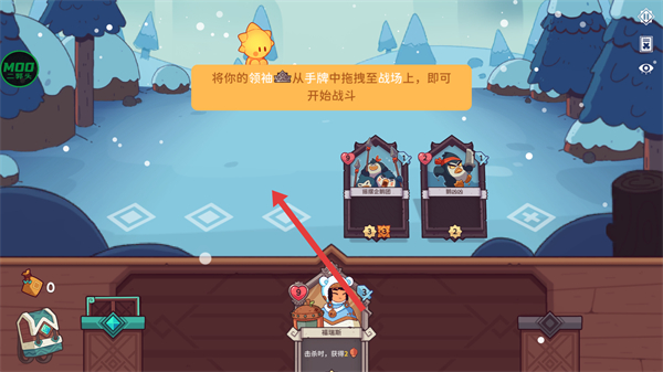 2、进入战斗准备界面,找到手牌中的领袖卡片,将其拖拽至战场空位。