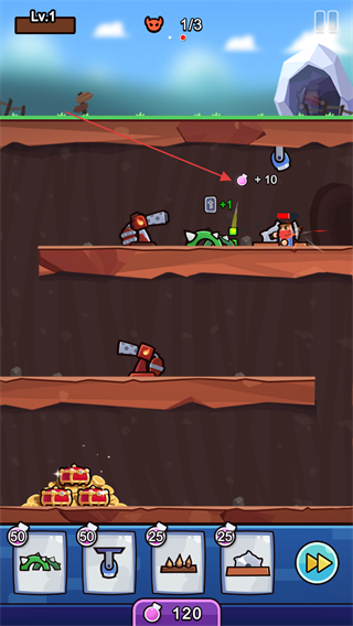 关卡场景丰富多样,不同关卡的山洞路径、恶棍类型与强度各有差异,需灵活调整陷阱布局,避免防御模式固化,保持持续的游玩新鲜感。