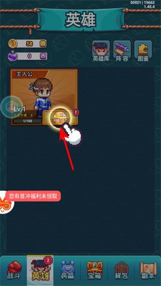 3、点击英雄按钮选择角色,这是提升战斗效率的核心操作,释放后可对敌方造成额外伤害或附加特殊效果,击败敌人的节奏。