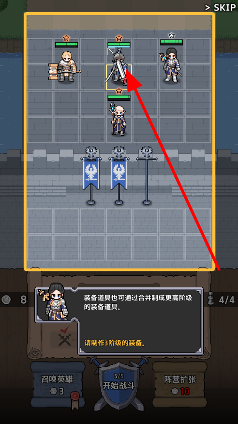 2、当重复召唤出相同的两名英雄时,可通过合并英雄,将其强化至3星,强化后的英雄实力更强,能更有效地参与战斗,提升城堡防御能力。