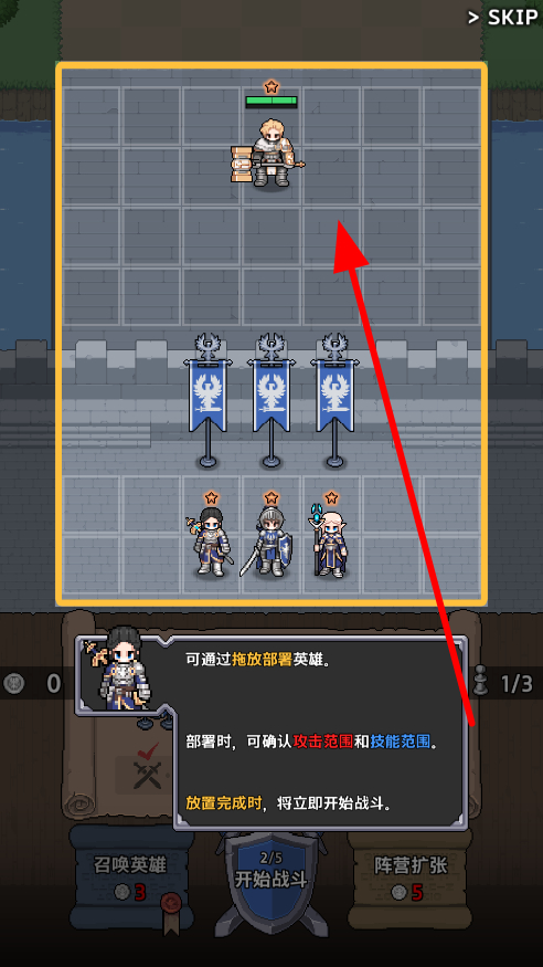 1、通过拖放操作部署英雄,部署时能确认英雄的攻击范围和技能范围,放置完成后,要根据战场情况合理选择英雄部署位置,发挥英雄最大战力。