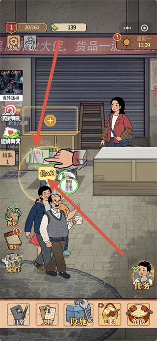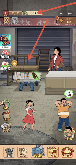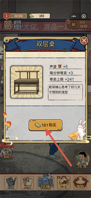 2、在设施页选对应物品,点击后可触发货品售卖收益翻倍效果。