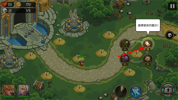 2、遇到建塔提示时,点击指定区域的建塔点位,这是构建防御体系的核心步骤,初期优先选择性价比高的箭塔,快速形成基础防御。