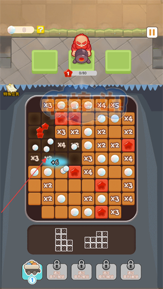 2、触发形状消除操作后,对应区域元素会被清除,同时获得+6等数值奖励。持续积累进度推进关卡目标。