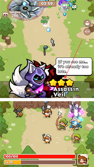 3、战斗中通过不断升级获取角色进行合成获得最终三星形态的角色,借助其能力攻击剩余怪物,提升战斗的推进效率。