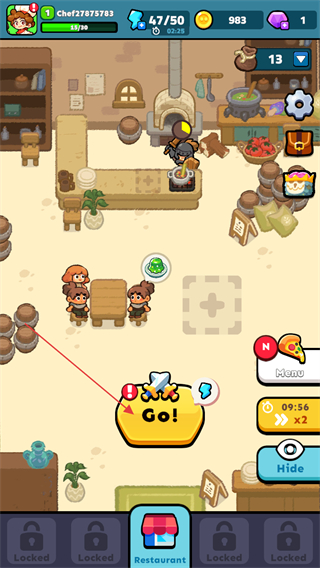 1、在餐厅界面中点击Go按钮,即可进入对应的战斗关卡开启塔防挑战的进程。