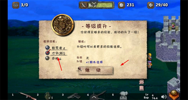 2、在弹出界面选择新增技能,点击继续确认,丰富战斗能力。