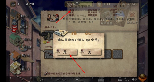 4、选择物品后点击是确认出售,获取金币,用于兑换资源或提升角色实力。