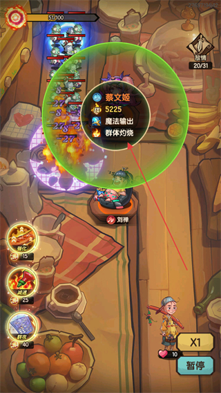 2、点击上阵的角色会显示角色的相关信息,能看到她的定位是魔法输出且带有群体灼烧效果,持续对敌方单位造成伤害。