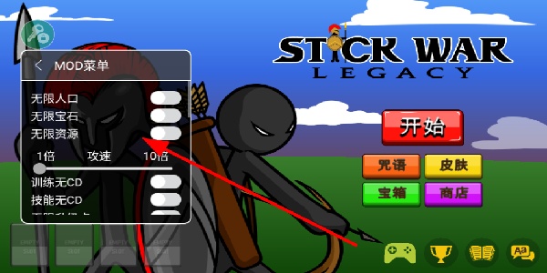 4、使用商店道具,在商店中选取合适的道具,用于战斗或资源获取,大幅提升火柴人部队的实力。