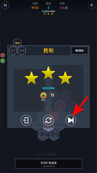 4、点击箭头指向的下一个的按钮,这是结算当前关卡并进入下一关的必要操作,点击后即可领取关卡奖励并开启新的对局挑战。