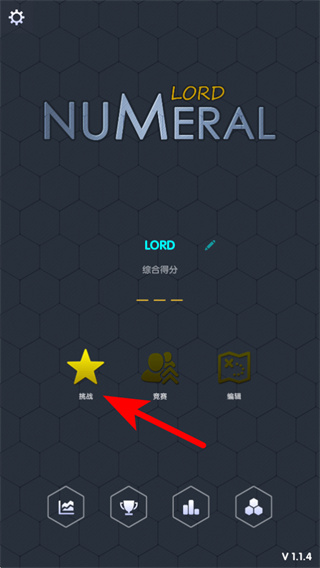 1、进入游戏后,点击箭头指引的挑战选项,这是开启关卡对局的关键操作,点击后即可进入游戏的核心对战场景。