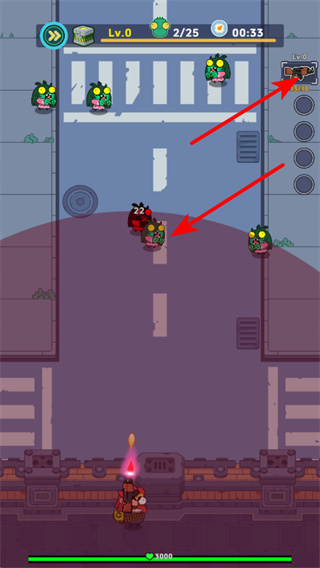 3、切换武器并攻击僵尸,这是推进关卡的核心操作,切换适合的武器可提升对僵尸的伤害效率,快速清理靠近的敌方单位,保障自身安全。