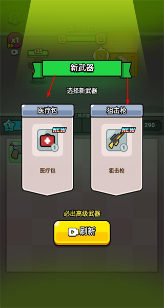 2、选择新武器,提升战斗能力,应对不同波次的敌人。