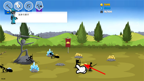 2、游戏中依照指引点击弓箭手,选择该单位,这是选中作战单位的操作,点击后可对其进行后续指令操作。