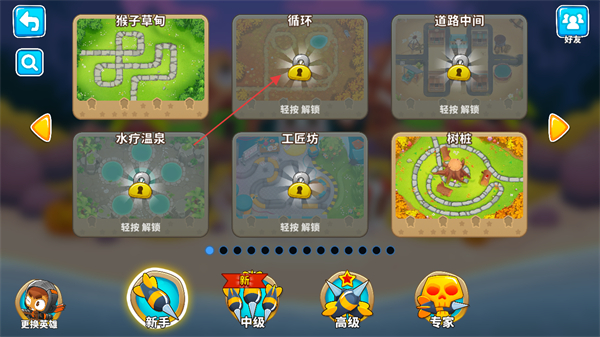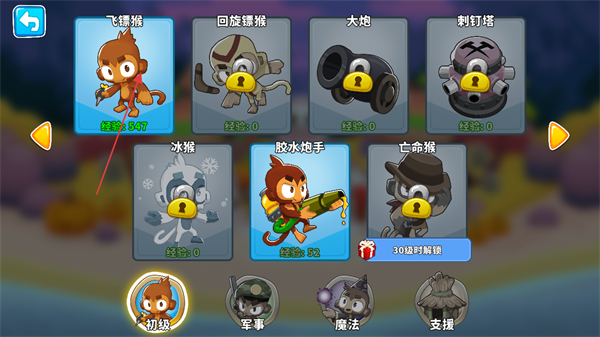 4、在关卡选择中可以点击关卡进行解锁,带着拥有新技能的猴子前往挑战。