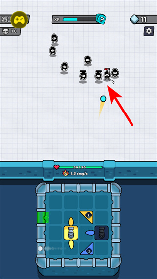 核心乐趣在于通过弹跳器引导球体到达最佳攻击点,利用挡板改变运行轨迹,让球体高效联动多个武器触发连锁攻击,每一次精准引导都能带来强烈成就感。