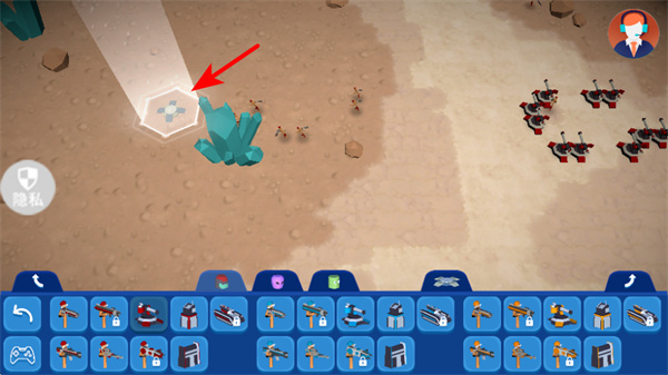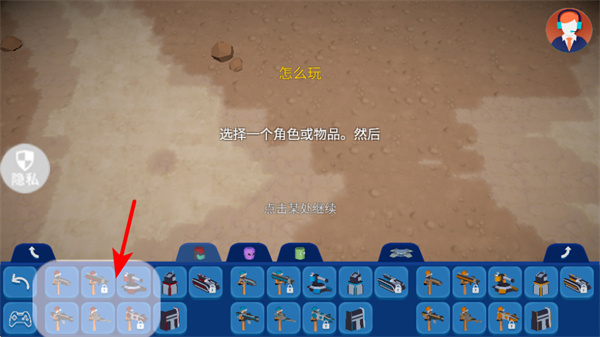 1、点击底部栏中的角色/物品图标如红色箭头指向的飞船,这是选择作战单位的关键操作,选好后才能部署到战场。