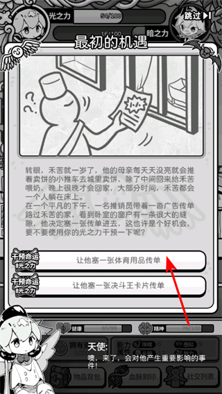 4、遇到机遇选择界面,需根据职业规划选择,同时消耗2光之力点击开始命运按钮,解锁角色专属成长线,推动剧情与战力双重发展。
