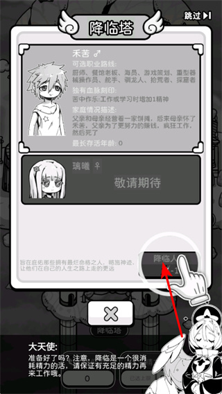 3、进入降临塔角色选择界面,优先选择禾苦进行降临,积累阵容基础,精力不足时可通过日常任务恢复,确保每轮降临节奏稳定。