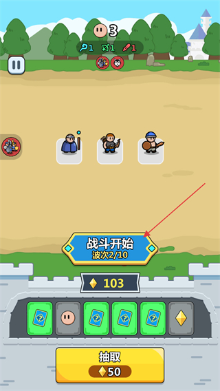 3、当没有钻石可以抽取或属性已经得到显著提升后,可以点击开始战斗进入战场。