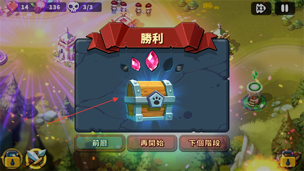 4、关卡通关后会根据据点血量来获取钻石和宝箱奖励。