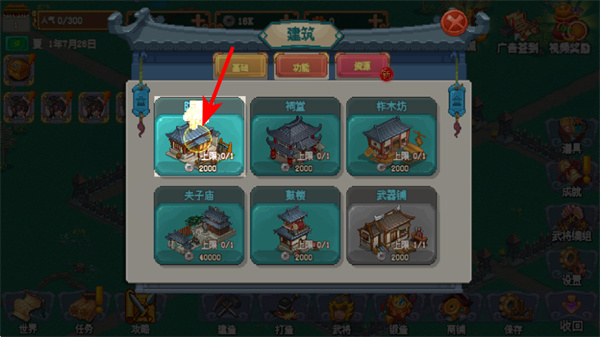 2、查看建筑详情时,点击建造按钮,这是确认建造该建筑的关键步骤,点击后建筑将开始建造流程。