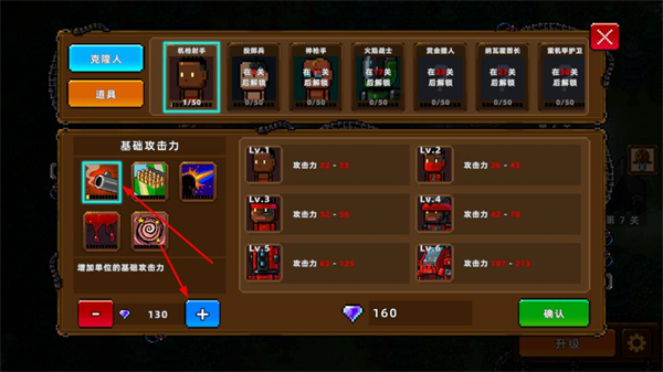 4、进入升级界面,消耗钻石提升士兵和道具的基础攻击力,增强战斗能力。