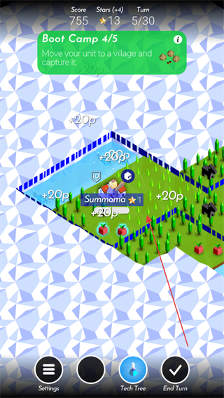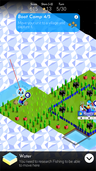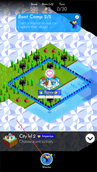 3、点击士兵可以让士兵前往指定位置,前往帐篷处点击士兵上方的按钮发起战争。