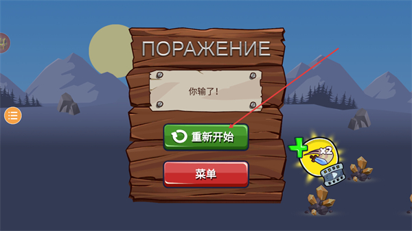 4、对局显示你输了后,点击界面中的重新开始按钮可再次开启该局对战,尝试获取胜利。