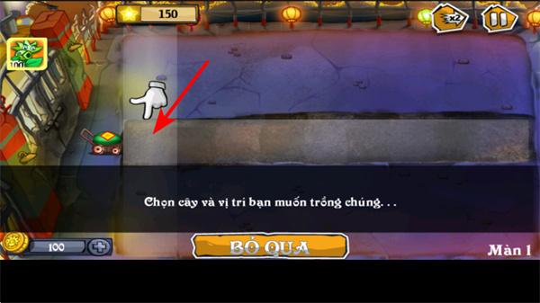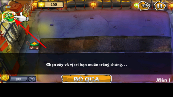 2、游戏中依照指引点击植物,选择要种植的植物,这是布置防御的基础操作,点击后可准备放置植物。