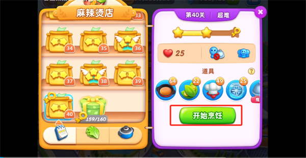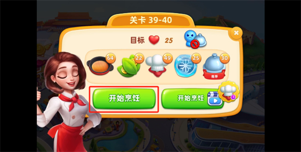2、此时玩家将需要选择自己想要挑战的关卡 以及点击,选择好之后就需要点击屏幕右下角的【开始烹饪】按钮;