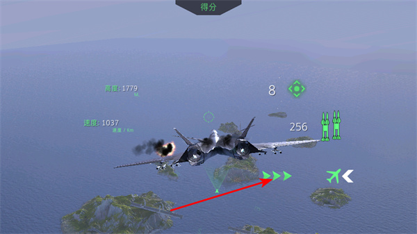 3、飞行进行控制,通过右侧的飞行控制图标调整战机飞行状态,同时注意战机的速度稳定性。
