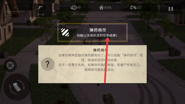 3、当弹药用尽时,可轻触弹药用尽提示,快速前进到任务结果,这并不一定意味着失败,若路障足够坚固且僵尸所剩无几。