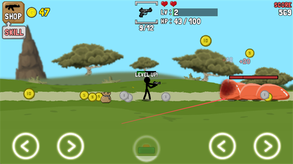 火柴人枪手功能菜单是一款火柴人题材的射击作品,采用2D横版画面呈现,核心玩法围绕射击展开,操作采用触屏模式,任意点击目标即可完成射击,过程轻松无复杂步骤,随着进程推进,可解锁更多强力武器,同时会遇到史莱姆等不同类型怪物及BOSS的更新挑战,内置功能菜单提供辅助,让射击体验更灵活畅快,感受简单直接的射击乐趣。