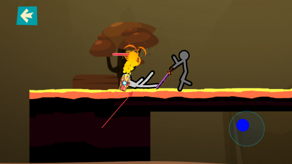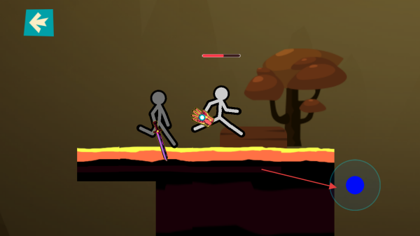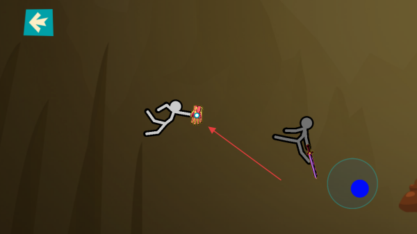2、当敌人靠近,点击攻击按钮,操控火柴人挥动武器反击,削减敌人血量。